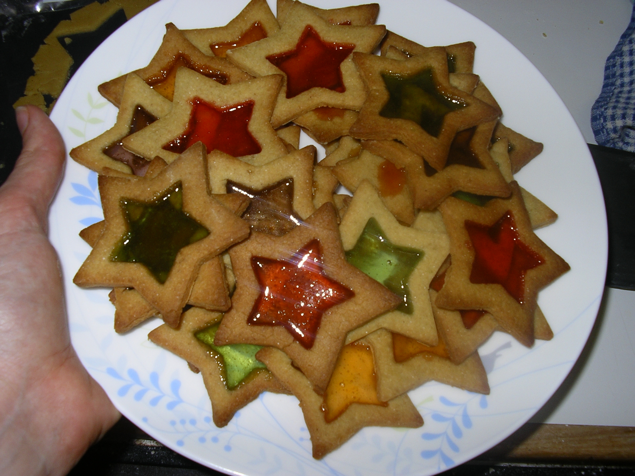 The stained-glass effect works brilliantly. especially with this, or any other reliable dough and they would look great hanging on your tree or as gifts.