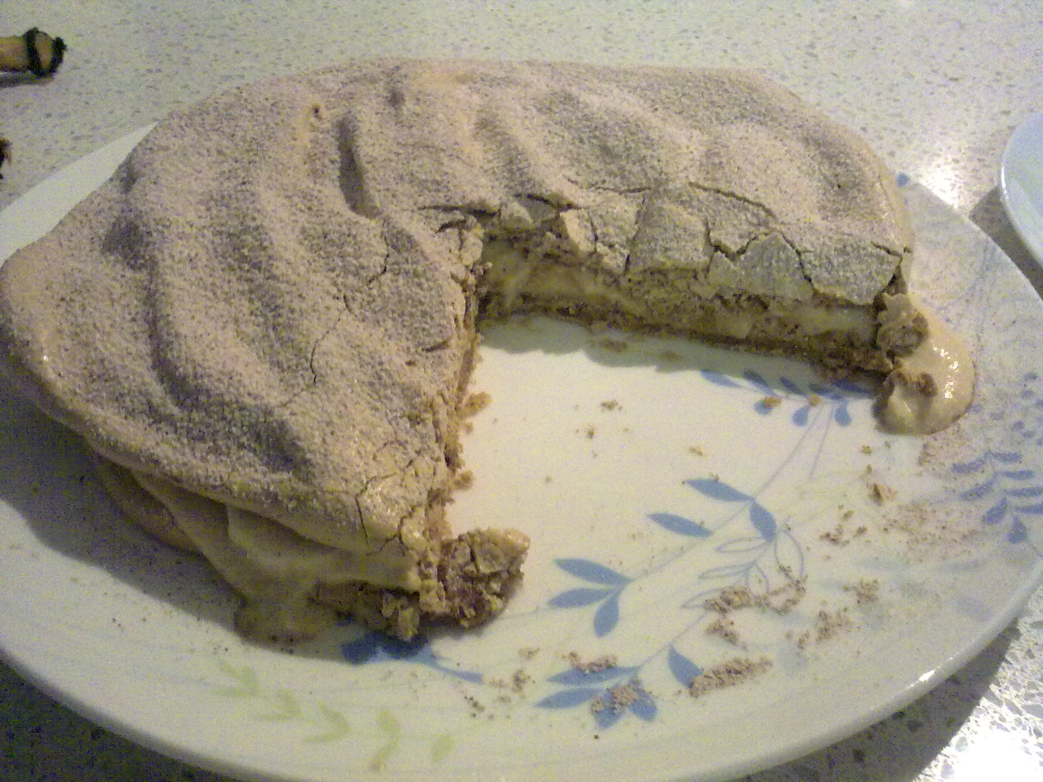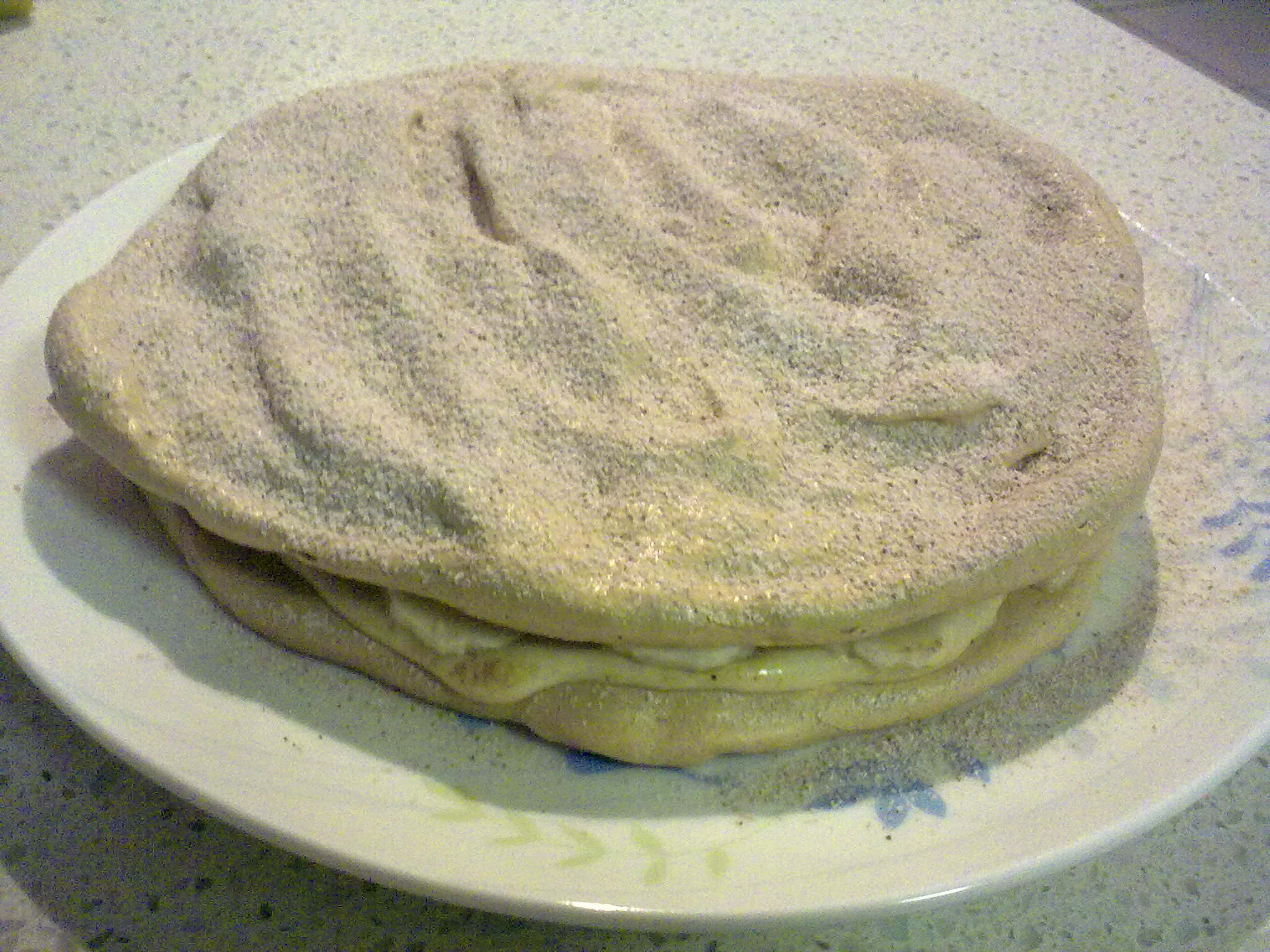 Top with a second disc of meringue, dust with icing sugar and serve with joy. This recipe was fantastic – so easy, versatile and tasty. Also a very easy alternative to the pavlova and, to my mind, much tastier.