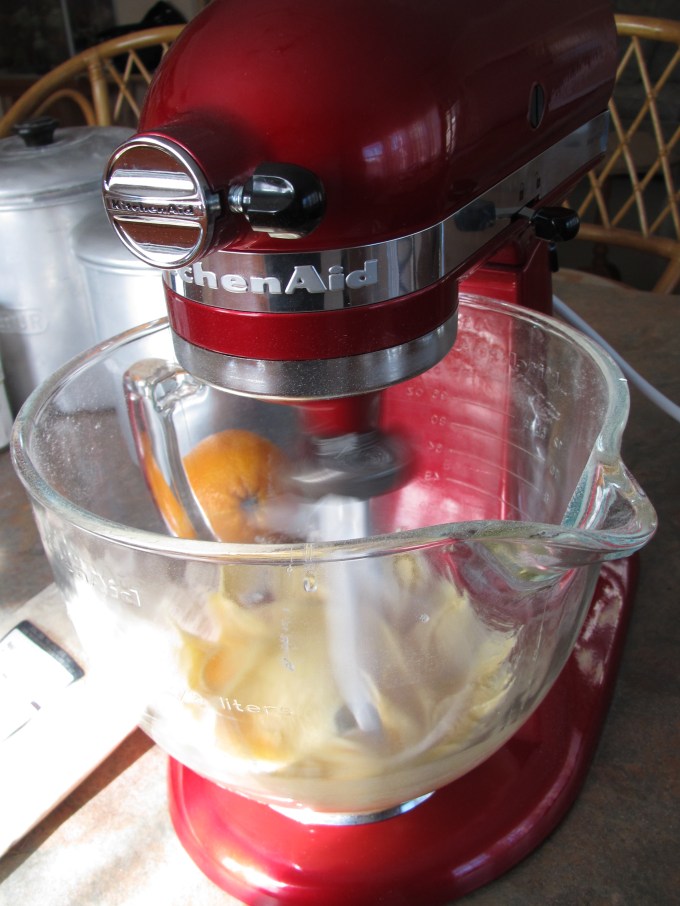 3. Gradually beat the sugar into the egg yolks and continue beating until the mixture is thick and pale yellow. Add the grated orange rind and orange juice. Beat until the mixture is light and foamy. The originally recipe calls for 1/4 teaspoon of almond extract but I really don’t think it’s necessary.