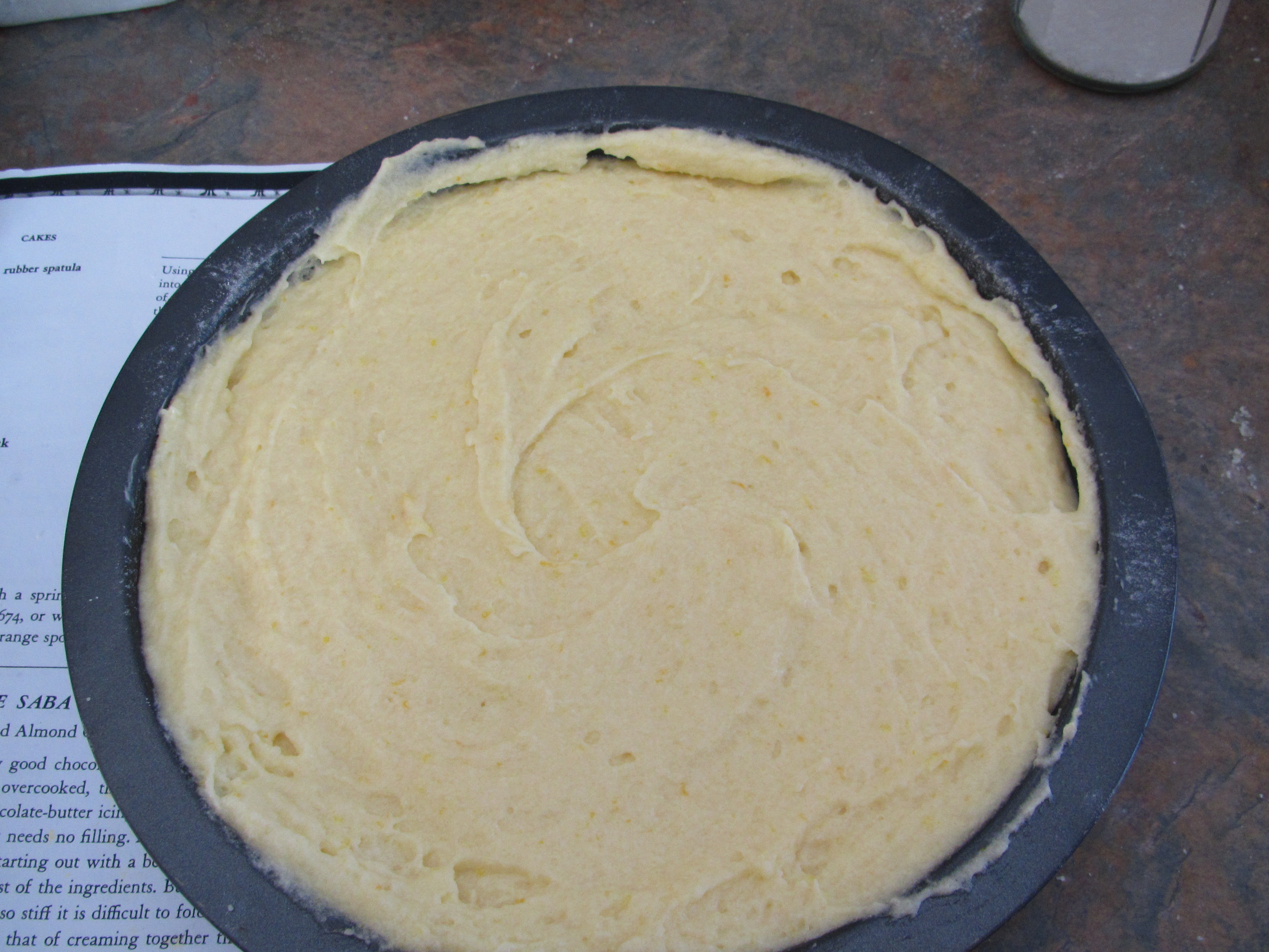 7. Turn into the prepared tin and run the batter all the way up to the rim. The cake does not rise in the oven.