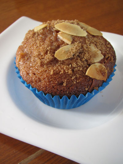 7. Mix about 1-2 tablespoons of brown sugar and the flaked almonds together. Sprinkle on the muffins.