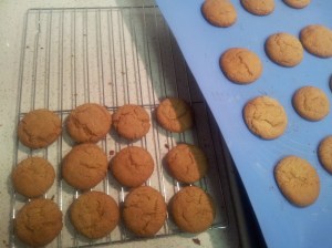 The texture and density of these biscuits is nice; crunchy on the outside with a little chew in the middle (possibly thanks to the addition of milk). However I really feel the flavour is not strong enough for my preference. The gingernuts I am trying to emulate (Arnott’s, admittedly) have a strong, almost spicy ginger flavour. I may have to try another recipe, or perhaps another ginger spice to get that same heat.