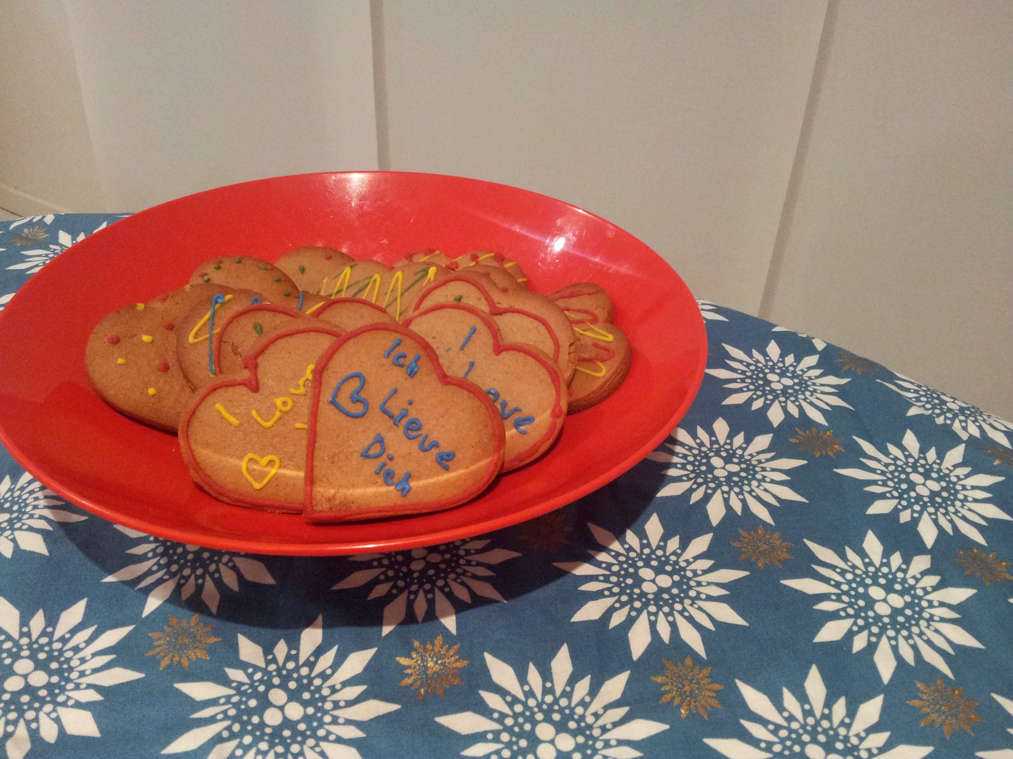 If you wish to stick to the very traditional German style though, lots of colours and even German phrases are key. As it was not Christmas time, I wrote “I love you” in both English and German “Ich liebe dich”, because who could resist such tasty cookies adorned with the sweetest sentiment of all?