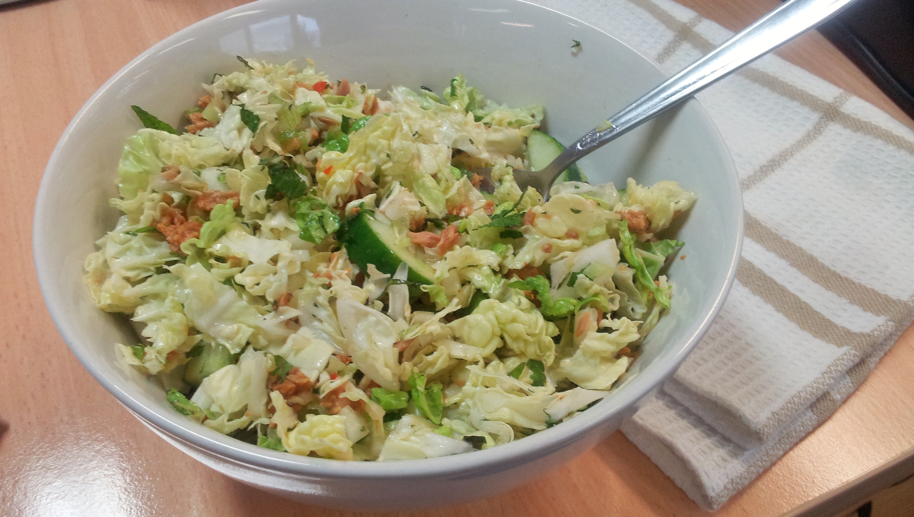 This is a salad I like to make for my lunch at work occasionally or to go alongside some spiced fish or marinated BBQ meats. In the picture above, I have stirred a tin of tuna through for a simple summer lunch.