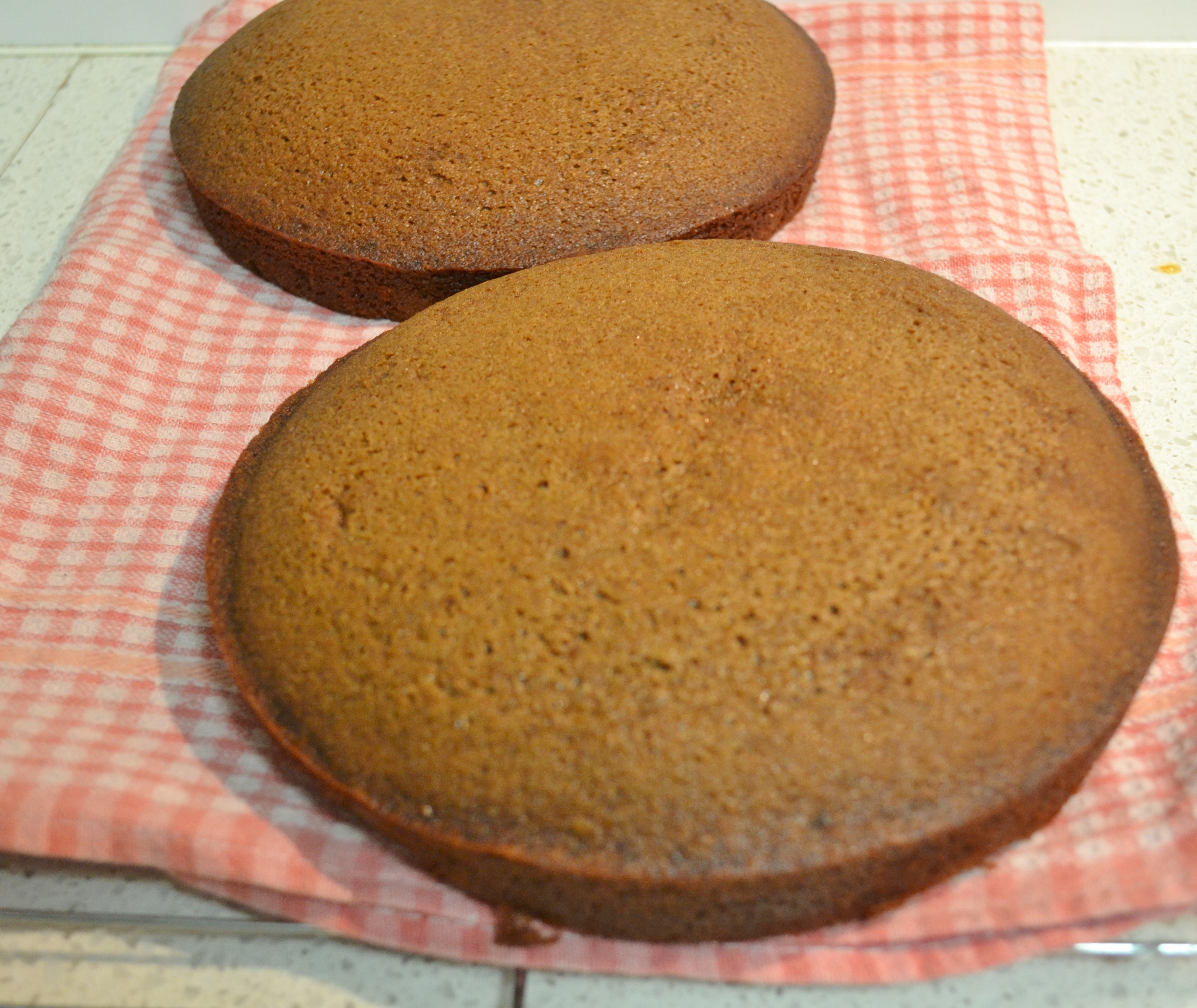 Pre-heat your oven to 160° and grease two 20cm cake tins, lining the base of each tin with baking paper.
