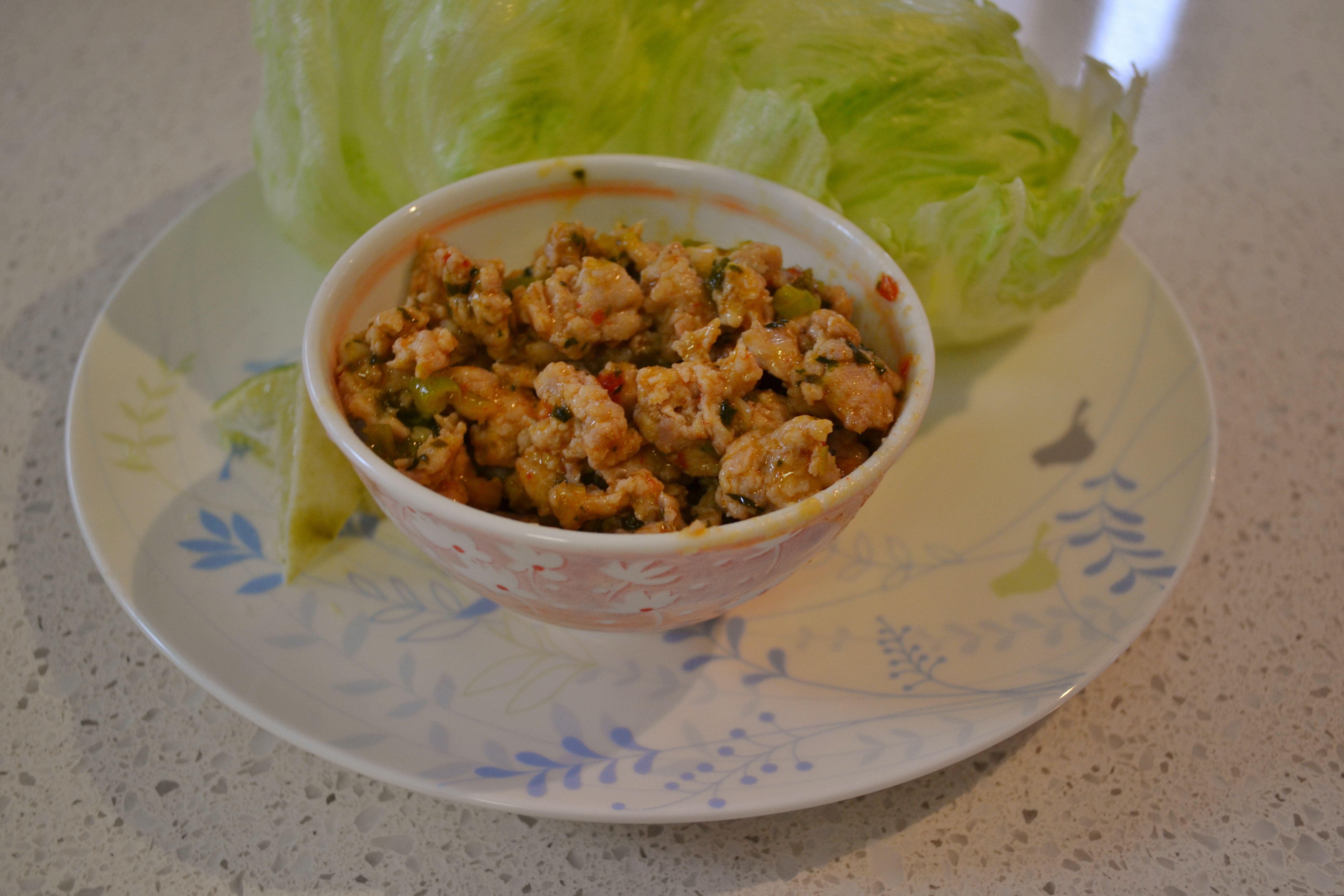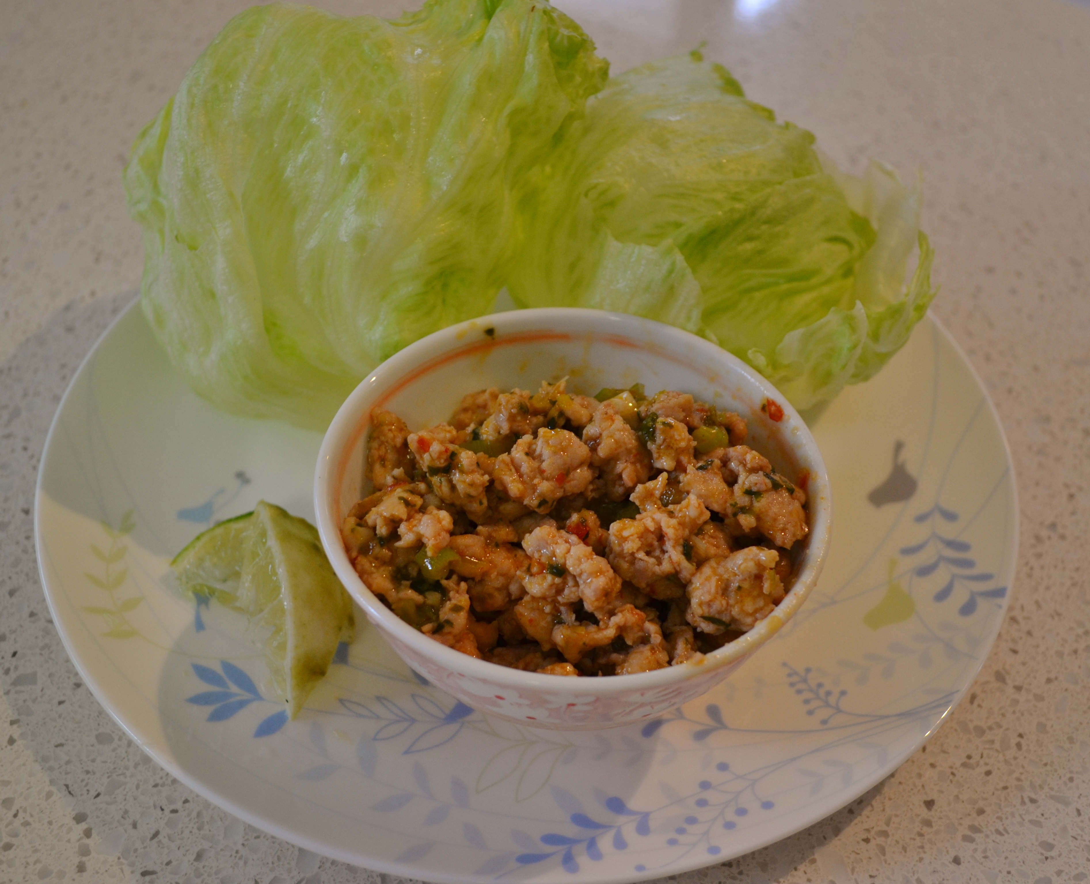 Keeping on the Thai meal theme in our house, I decided to try this recipe from Michelle Bridges. It’s a very simple but flavoursome meal, packed with herbs and spices. As I couldn’t find any lean chicken mince readily available, I blitzed some skinless chicken thighs in my food processor in place of the mince. Unfortunately my local supermarkets and green grocers didn’t have fresh mint and coriander in stock, so I was forced to use the herb pastes from the tube. The fresh herbs would of course be far better and I will make this dish again for a light dinner as soon as I can get my hands on some nice fresh bunches of coriander and mint!